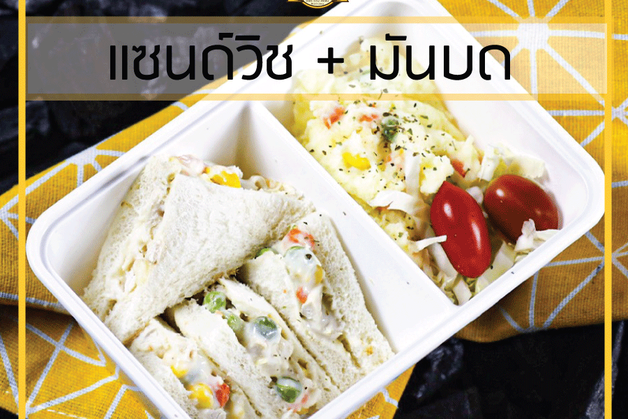 ส่วนประกอบ: ขนมปัง3ชิ้น+น้ำ1อย่าง (บรรจุกล่องกระดาษ)